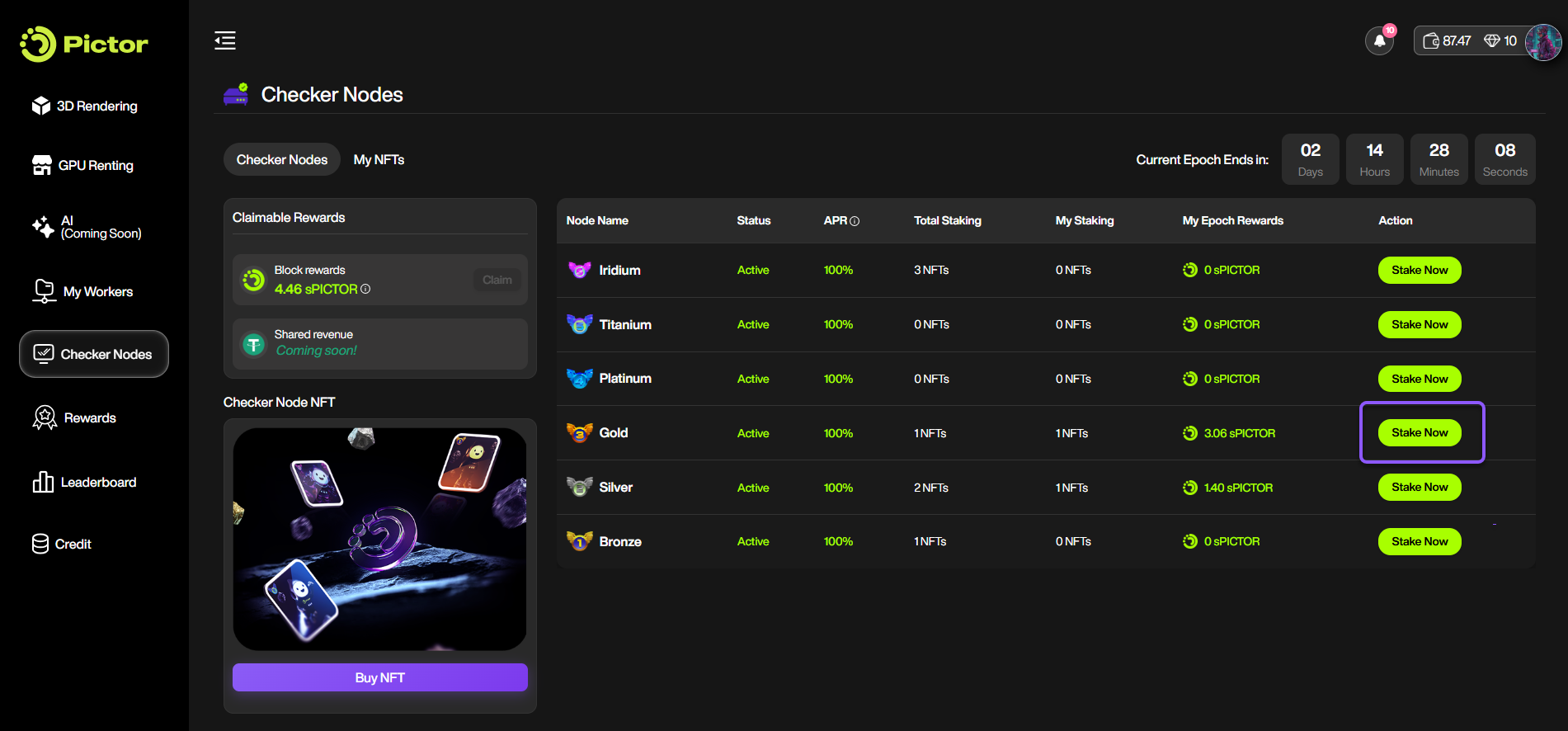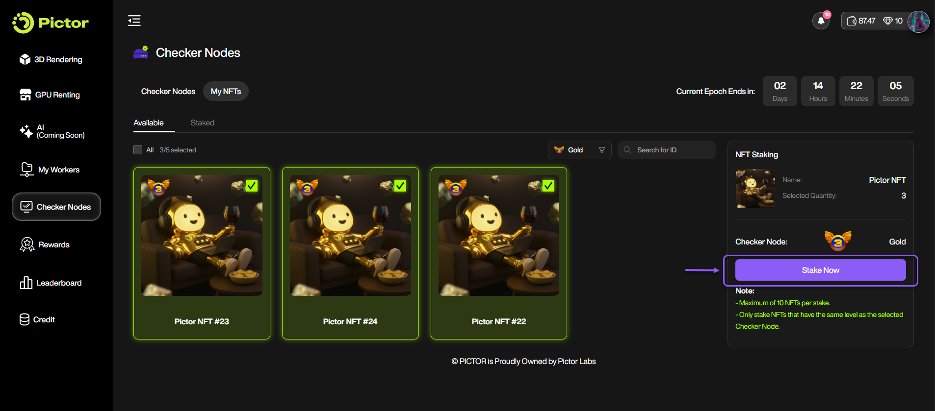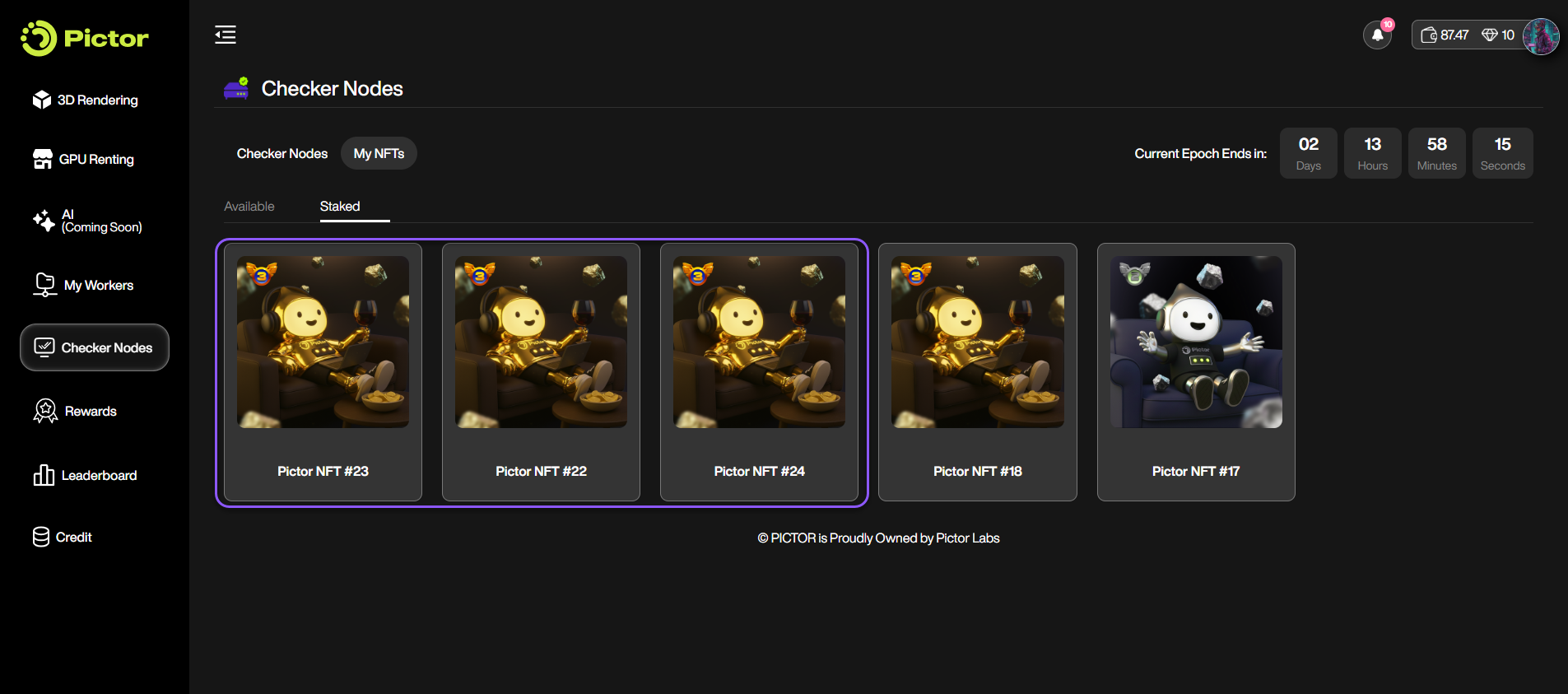 To get started, make sure you own a Pictor Checker Node NFT.&#x20;